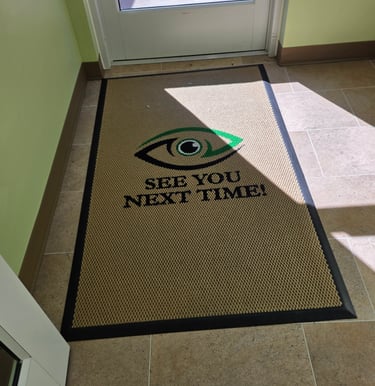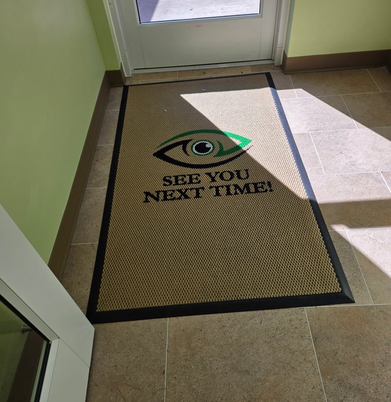 In a recent move one of our toner customers contacted us to do many of their rebranding efforts. From appointment cards, business cards, eyeglass cleaning cloths, signage and rugs we worked with them to get the right new look for their new location!